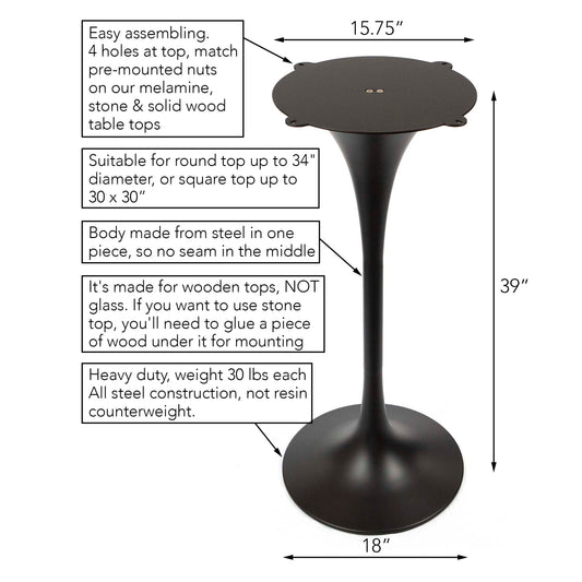 H39" Bar Height Tulip-Shaped Pub Table Base, #LK1840