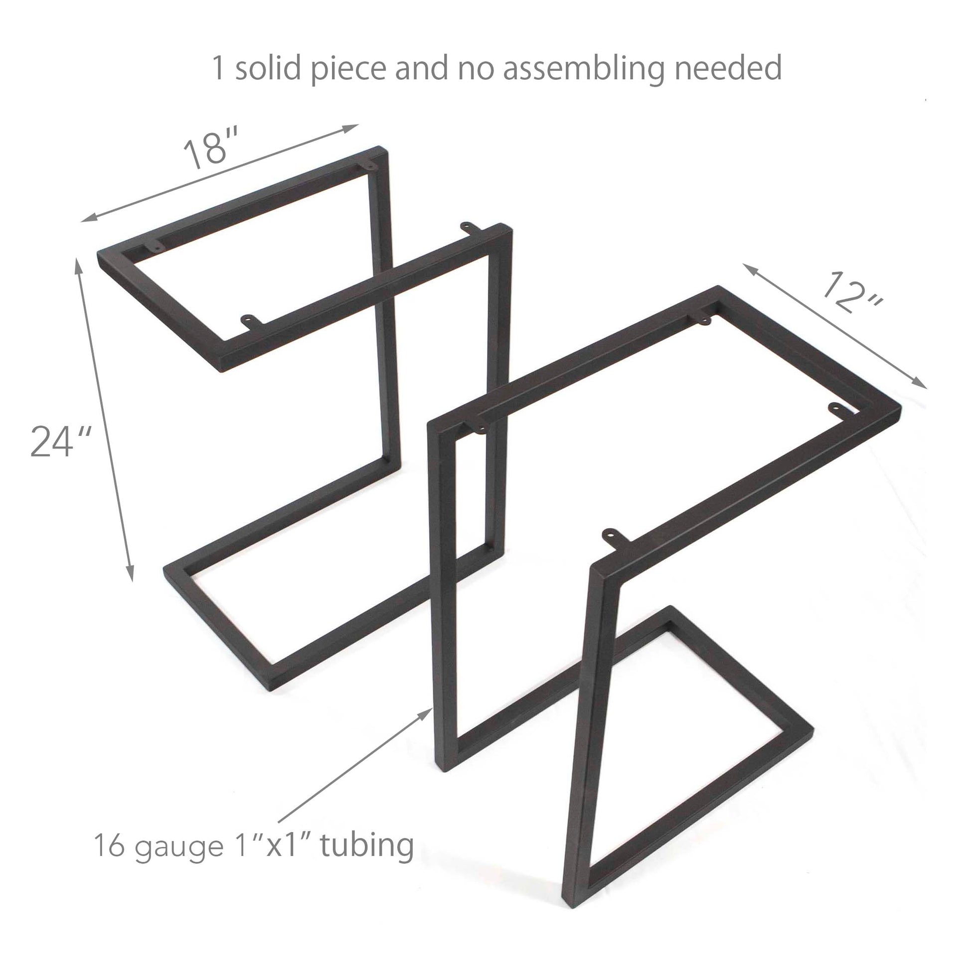 Overall 18" x 12" x H24", made in 16 gauge 1"x1" tubing, black powder coated.