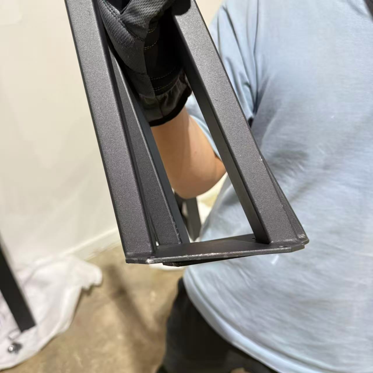 The scratch-resistant black powder coating withstands daily wear. A small manufacturing hole at each leg’s base ensures complete sand removal during finishing – simply clean residual particles outdoors before assembly.