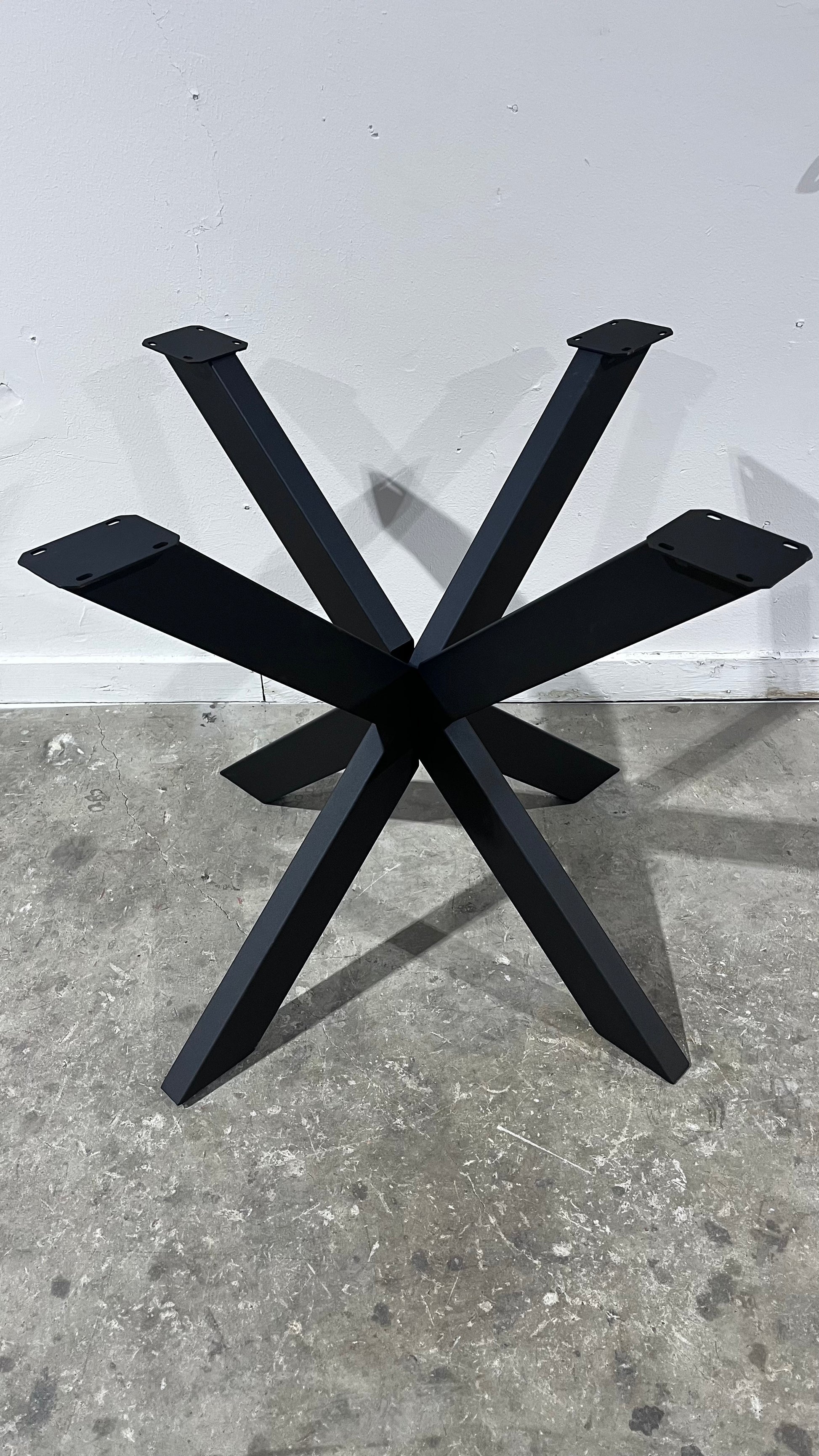 Build your round or square dining table with this modern Starburst Spider metal table base. This heavy-duty steel base provides a stable and stylish pedestal foundation, perfect for supporting large tabletops up to 60 inches in diameter (round) or 48 inches square. The striking geometric spider design creates a focal point while ensuring robust support for your custom dining table project.