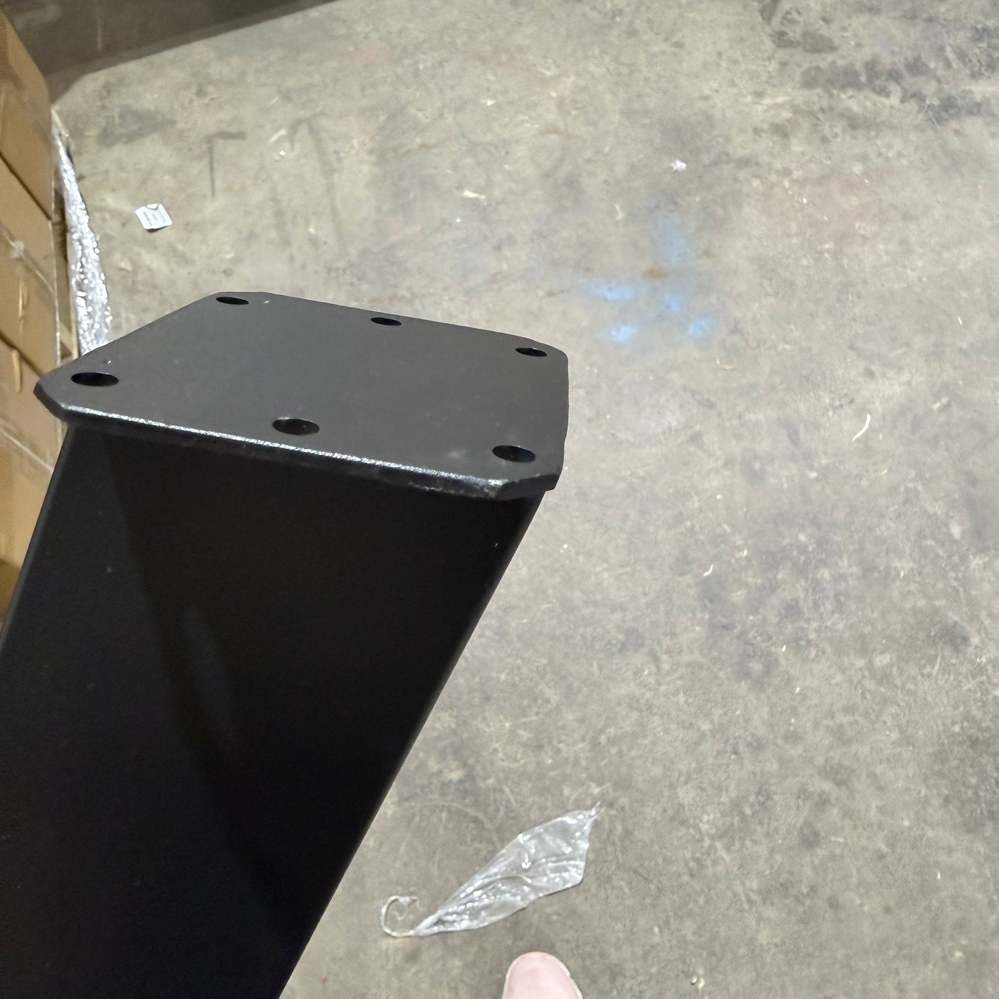 The 3.5"x3" top plates feature pre-drilled holes for simple attachment to your chosen tabletop (we recommend #10 wood screws or 1/4" inserts). *Note: Some residual steel shot from manufacturing may be inside the hollow legs; simply clear it out before installation.*